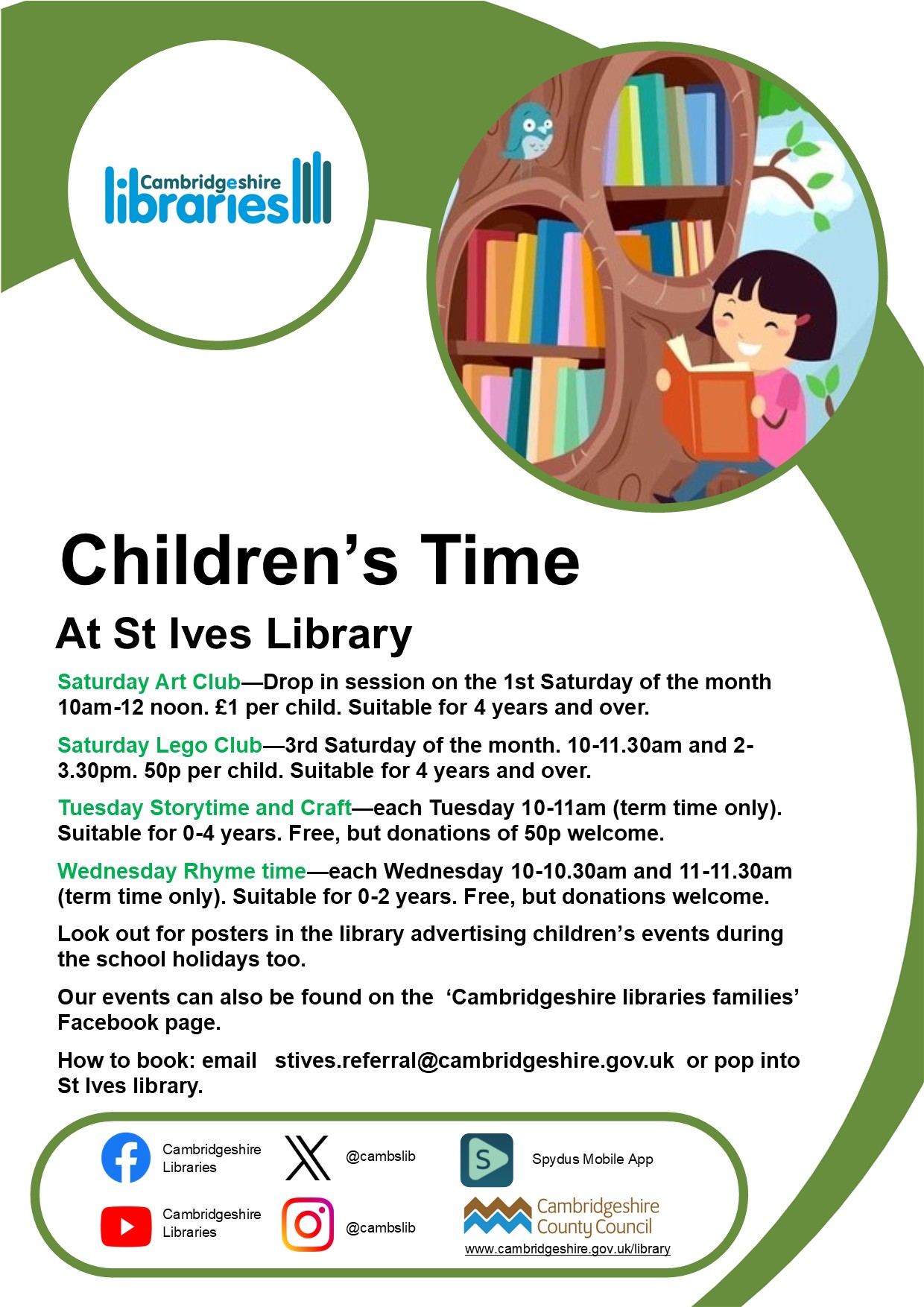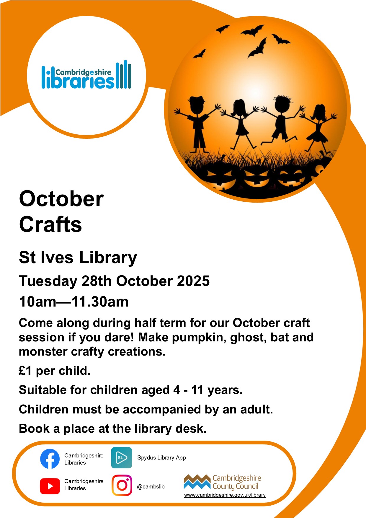Here are some activities and events for you and your children to engage with: Community Autumn 2025/2026 Soothe Dance 90 KB Scribble and Story Time 423 KB Hunts Family Newsletter 1.31 MB Half Term Craft 312 KB Fables 98 KB Drawing Competition Poster 370 KB Childrens Time 2025 for Schools 363 KB Cambridge United Football Club 486 KB Billy Kid Magic 91 KB Big Draw Poster 454 KB